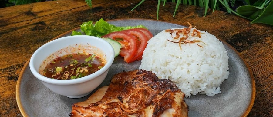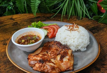 Riz aux brochettes poulet ou porc grillé citronnelle, ail